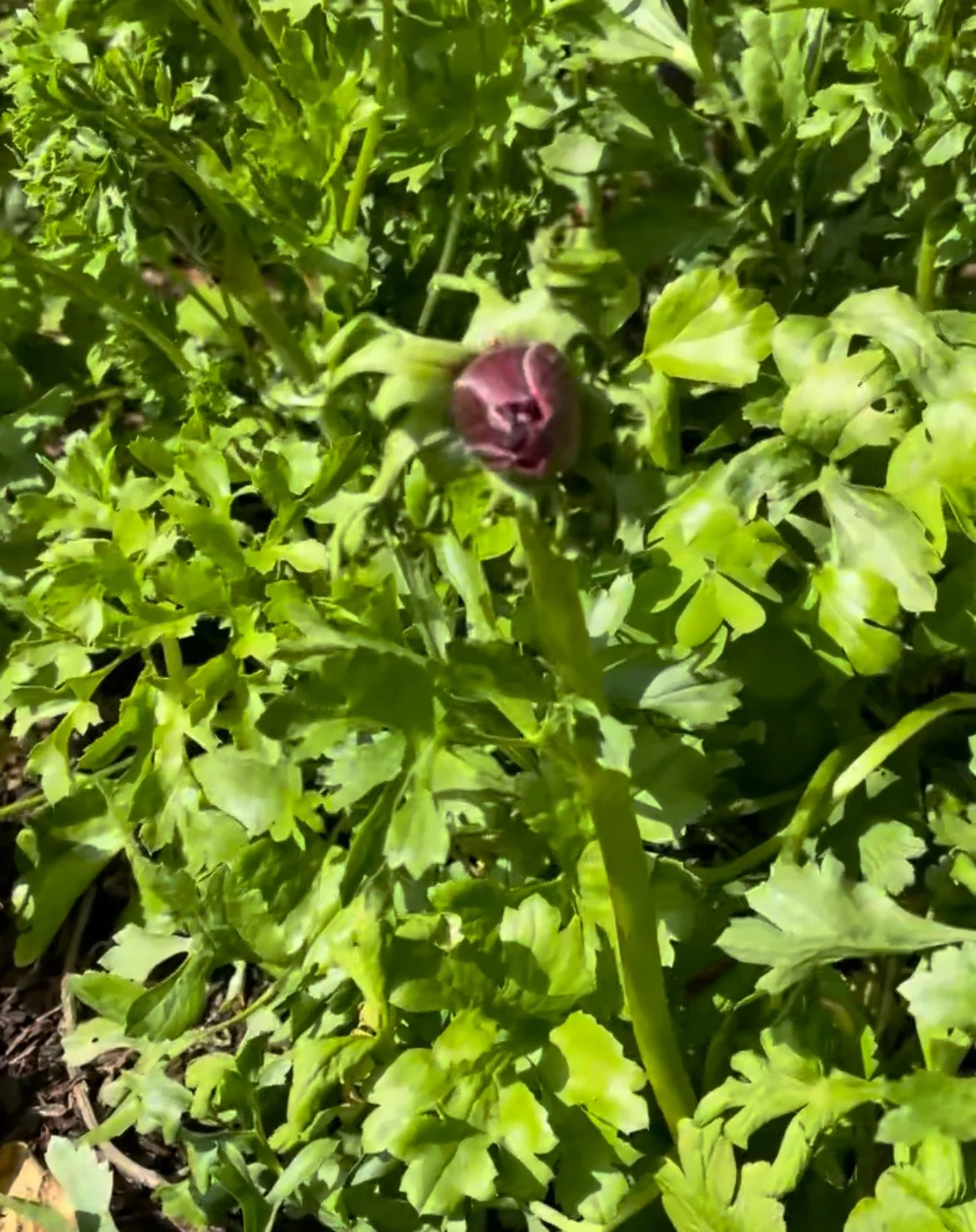 Pop them in with the claw side down (that’s for ranunculus), or pointy side down for anemones, about 3 -5cm deep and spaced out nicely so they don’t have to fight for space. I use a stick to poke a hole and then pop them in and sprinkle dirt over afterwards - working from one side of the garden bed to the other so I don’t forget where I am up to. Cover them up and let nature do its thing.